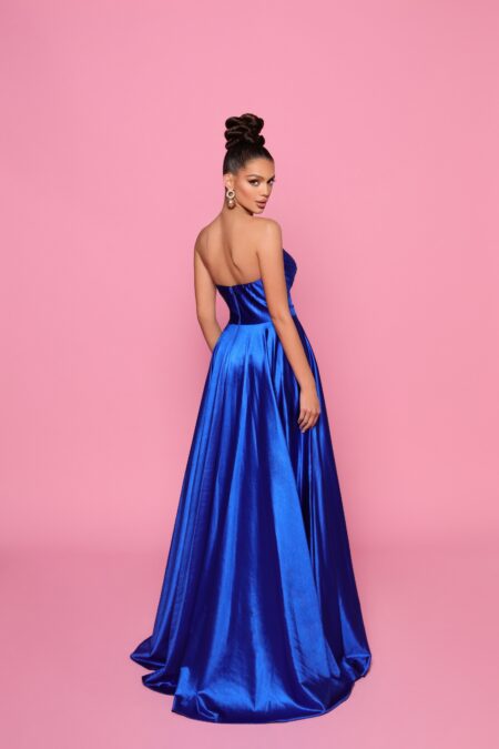Crafted with precision and attention to detail, the gown features a form-fitting bodice that gracefully extends into a flared, mermaid skirt, enhancing your silhouette with a touch of drama. The royal blue hue, reminiscent of opulence and refinement, adds a royal touch to your evening ensemble.