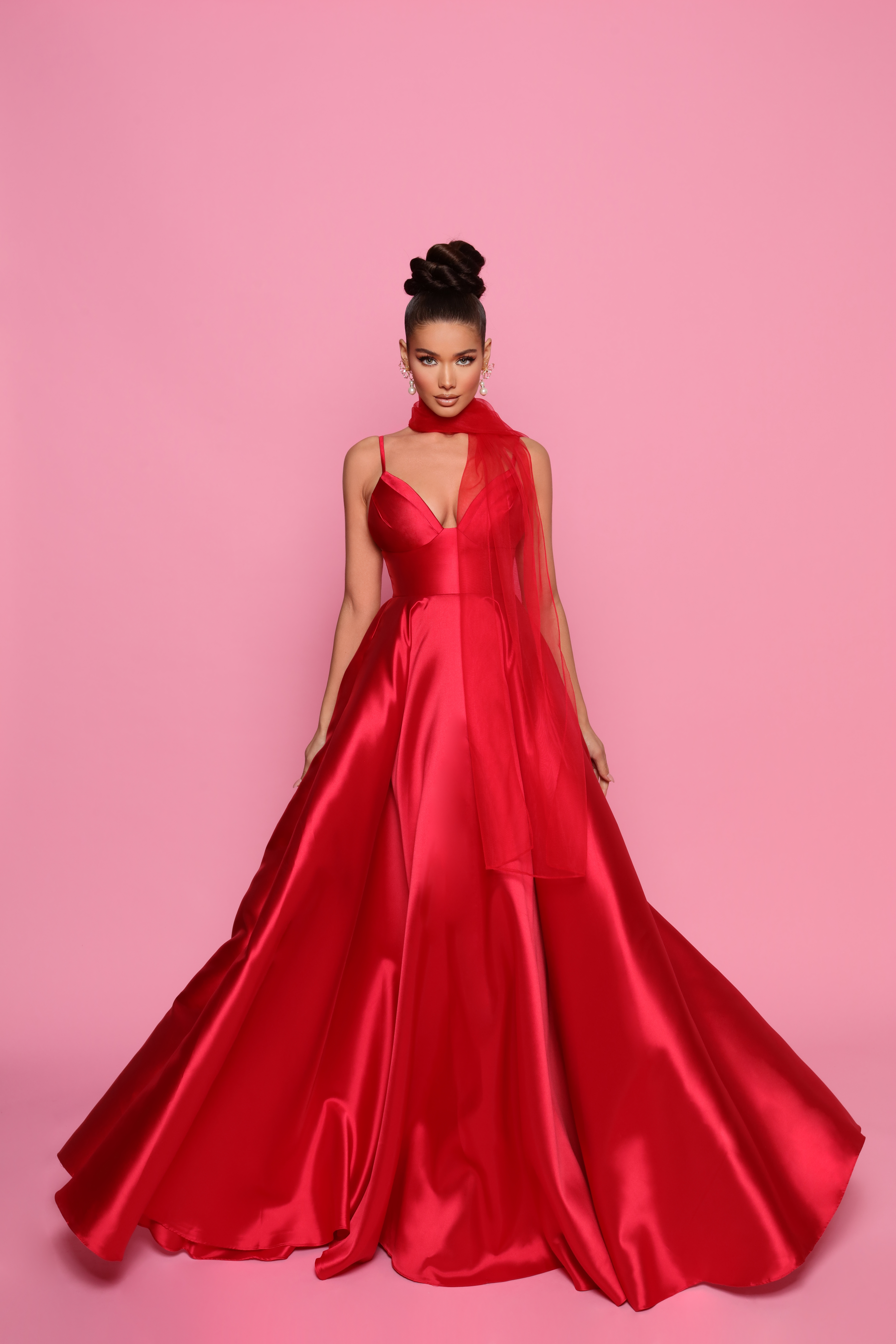Evening red dress with scarf – indulge in timeless sophistication, meticulously crafted to elevate your style with grace and poise. A gala event demands sophistication and grace, and a red dress delivers just that. Whether you prefer a floor-length gown or a chic knee-length dress, our collection of red dresses for rent or purchase has something to suit every taste. The rich hues of red symbolize elegance and allure, ensuring you make a memorable impression. Pair your dress with statement jewelry and elegant heels to complete your gala-ready look.