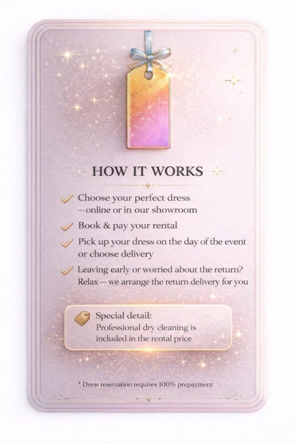 “Step-by-Step Instructions to Effortlessly Rent the Perfect Dress for Your Special Occasion. Learn How to Browse, Reserve, and Enjoy Our Exquisite Dresses with Confidence.”
